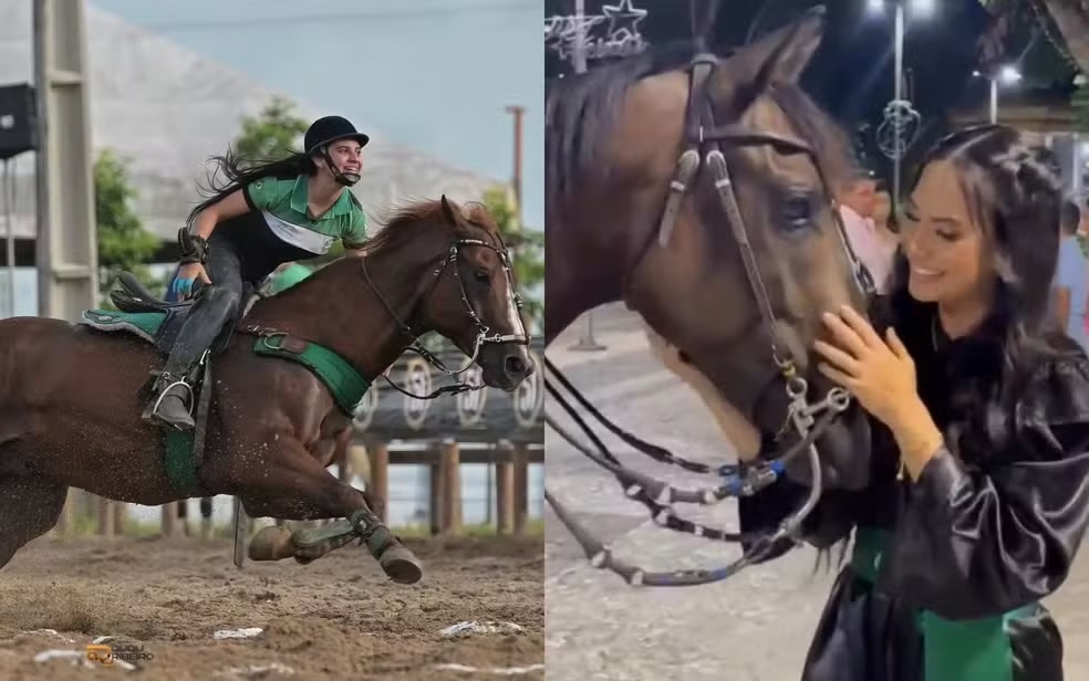 A parceria com a égua também é destacada nas redes sociais da estudante que participa de competições de vaquejada e valoriza a relação com o animal.